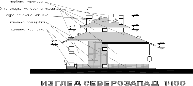 - на втория етаж : ателие (стая за игра, стая за гости) с голяма тераса на югозапад,